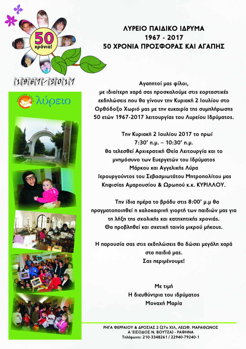 Οι αδελφές και τα παιδιά του Λυρείου Παιδικού Ιδρύματος σας εύχονται Χρόνια Πολλά, Χαρούμενα, Ευλογημένα.